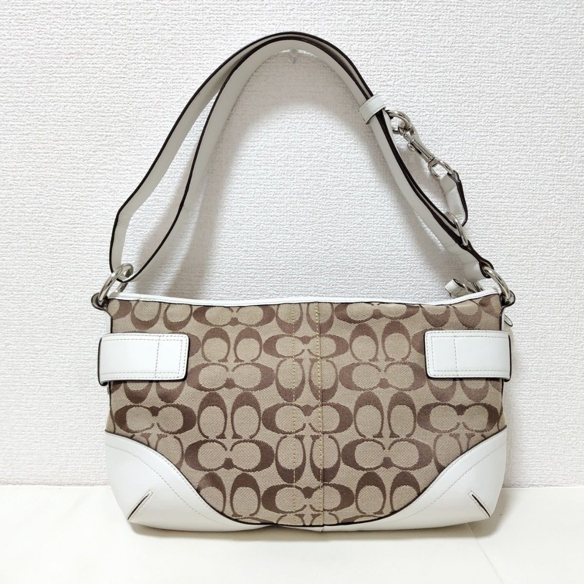This Coach Signature 2WAY bag is absolutely stunning! The beige and white color combo is so versatile—perfect for any outfit. The quality is top-notch, with sturdy stitching and durable materials. It's spacious enough for daily essentials but still sleek and stylish. The shoulder strap makes it easy to carry, and the design is timeless. Shipping was fast, and it arrived well-packaged. Definitely worth every penny—I’m in love with this bag!