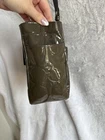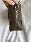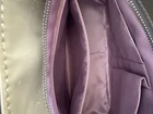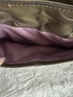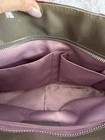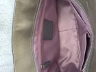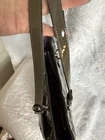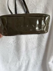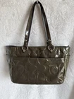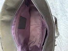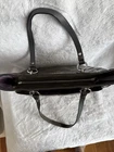 Coach Signature C Embossed Patent Leather Tote Charcoal Gray Excellent Condition - a few color transfer marks Beautiful shiny patent leather and gorgeous purple interior 2 exterior side pockets Back slip pocket Zipped Main closure Interior zipped pocket and 2 slip pockets 12Wx9Hx4D Shoulder 9in