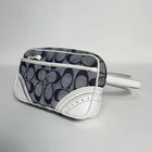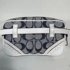 Love this Coach belt bag! The navy canvas and white denim combo is stylish, and the genuine leather accents add a luxe touch. The small stain is barely noticeable, and the adjustable strap makes it super versatile. Fits essentials perfectly, and the logo charm is a cute detail. Shipped fast from Japan—great seller communication too! Highly recommend for a chic, hands-free look.