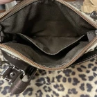 Details: • Style: Coach Signature Stripe File Bag • Color: Classic Khaki / Brown with Metallic Glitter Stripe • Material: Signature jacquard canvas with glittery brown stripe, and leather trim • Hardware: Silver-tone with Coach medallion and hangtag • Closure: Top zipper • Strap: Adjustable crossbody strap • Interior: Fabric lining with slip pocket • Dimensions: Approx. 9” H × 8.5” W × 1” D • Condition: Excellent / Like New — no stains, scratches, or signs of wear