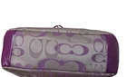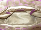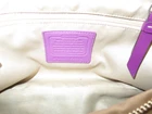 Crafted with the modern woman in mind, this Coach Handbag combines both style and functionality. It features a signature canvas body with elegant leather trim, complemented by a striking beige and purple exterior. The medium-sized tote boasts a spacious interior lined with a soft fabric, perfect for housing your essentials for daily use or travel. The bag measures 16 inches in width, 9 inches in height, and 4 inches in depth, providing ample room for your belongings. It is designed with a rectangle shape, two side slip pockets and double handles, ensuring comfort when carried. Silver hardware accents the beige canvas, while the purple leather straps add a pop of color, ensuring this piece is not only practical but also a statement accessory for any occasion.