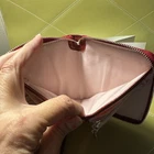 The Coach Signature Full Zip Wallet in red canvas is a stylish and practical accessory for women. Made from durable canvas and leather, this zip-around wallet features the iconic Coach logo on the exterior. The classic beige color and sleek design make it a versatile piece that can easily be paired with a variety of outfits. With multiple compartments and a secure zip closure, this wallet is both fashion-forward and functional. Perfect for those on-the-go, the Coach Signature Full Zip Wallet is a must-have for any fashion-conscious individual. It’s never been used. Just stored. Please notice strap. See photos.