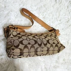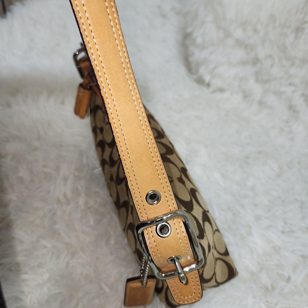 Absolutely love this Coach pouch! The signature pattern is timeless, and the leather/canvas combo feels luxurious. The tassel charm and buckle add such cute details, while the shoulder strap makes it super convenient. Perfect size for keeping my essentials organized, and the neutral colors go with everything. Even though it's pre-owned, it's in great shape—such a steal for a stylish and functional accessory!