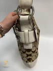 Coach Signature Jacquard Chelsea tote bag 10x1x11 3 interior pockets All closures are functional. The item shows signs of wear from normal use- very worn piping, Very worn leather trim, Worn exterior, Marks throughout, scratched hardware, Ripped pocket on interior, Etc. Please refer to photos for further details. In store and our website for $25