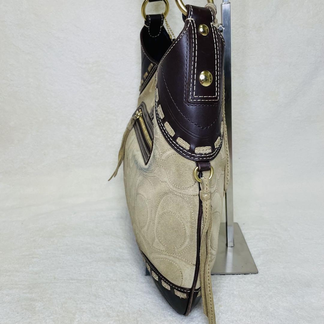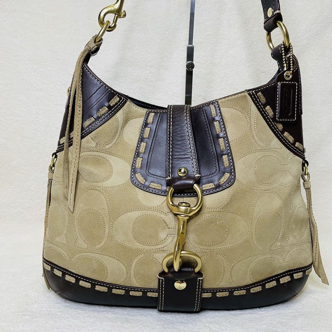 This Coach Signature Shoulder Bag is a classic beauty! The beige and brown leather gives it a timeless, elegant look, and the size is perfect for everyday use. While it has some light scratches and wear from previous use, it adds character—still in great shape overall. Shipping from Japan was smooth, and the seller was super responsive. Love that it’s authentic and comes exactly as described. A fantastic find for anyone who loves vintage Coach! Highly recommend this seller for their honesty and great communication.