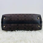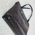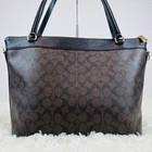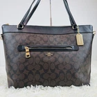 This Coach Signature Tote is a stylish and practical choice! The dark brown PVC gives it a sleek, high-end look, and the spacious interior fits all your essentials. Though there are minor scuffs on the corners, it’s in great condition overall. The included storage bag is a nice bonus. Fast shipping from Japan and excellent seller communication make this a smooth purchase—perfect for everyday use or travel!