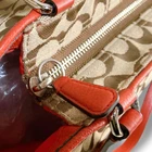 This Coach tote is a gorgeous blend of red and brown with stylish silver hardware—perfect for elevating any outfit. The pre-owned condition is excellent, with no major flaws, just a little character. Authenticity is guaranteed, and shipping was fast with tracking included. Love the spacious interior and sturdy straps—great for daily use. Highly recommend this classic piece!