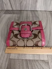 Coach Peyton Signature Envelope Wallet with Pouch in Khaki Navy Excellent Condition