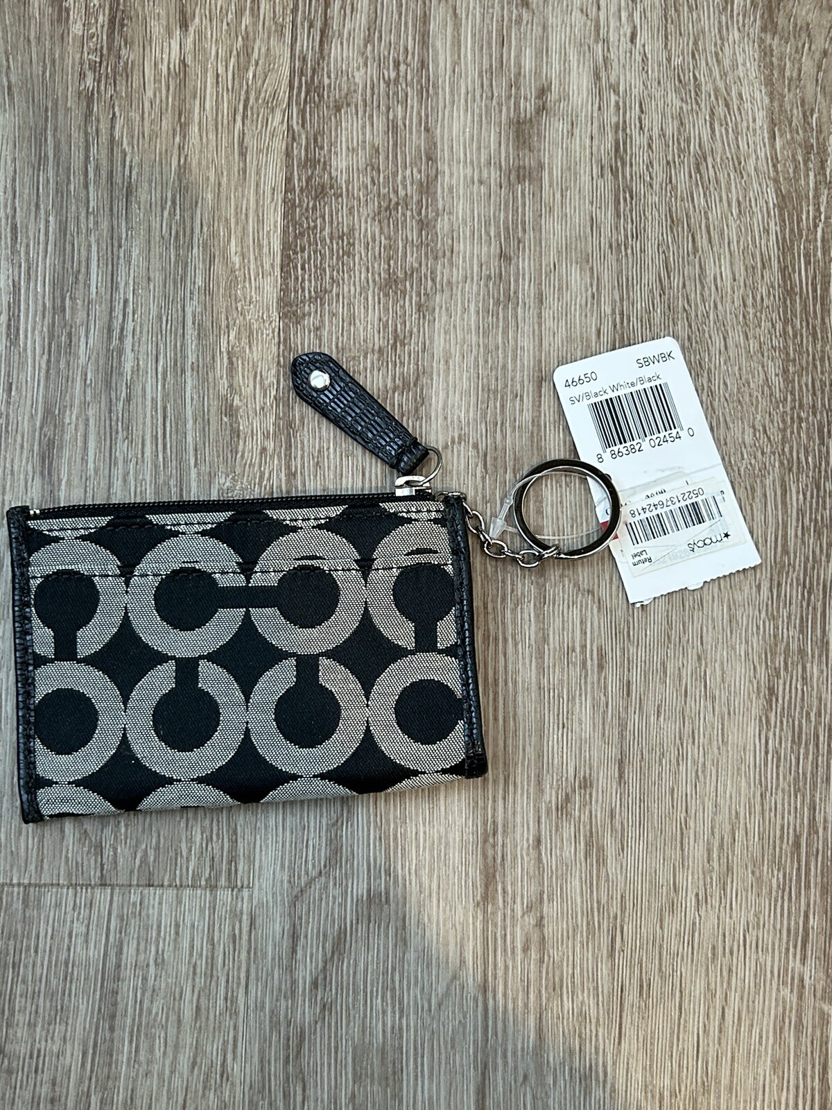Coach Signature Zipper Wallet Change Purse & Key Chain Black & Silver #46650 *New in excellent condition *Black and Silver *Leather and fabric (lined inside with black fabric) *Room inside for license, credit card and some cash *Pocket on outside *No returns accepted Item comes from a smoke free, but not dog free home. PAYMENTS We accept payments via PayPal only. PayPal takes payments by a wide variety of DEBIT and CREDIT CARDS. You have two (2) days from the date of sale to make your payment SHIPMENT We use US Postal Service (USPS) to mail your purchase to you. We ship domestically within the US. We take pride and care in the packing of your item(s) purchased too ensure they are safe and secure. All your purchases are shipped within 1-2 business days of payment. For each shipment you will receive an email confirming the shipment - with its TRACKING NUMBER. As the Seller, our responsibility ends at the Post Office for the condition, safety and security of the merchandise we mail to you, the Buyer.