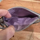 Coach Signature Pleated Silver Gray Wristlet It features a shimmering silver signature leather & fabric exterior with pleated accents and a zip closure to keep your essentials secure. Approximate Size: 6" L X 4.5" H X 1" W Fits an iPhone or similar smartphones Color: Silver/Light Grey