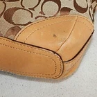 Up for sale One Handbag iNTERNATIONAL SHIPPING AVAILABLE Please scroll down and read the ENTIRE listing. Please CHECK THE SIZE, MAKE SURE IT'S JUST YOUR RIGHT "size. "This bag is in Great Condition. There is no leather or jacquard loss. Exterior has a couple dots and little darker patina in a couple places/interior little darker patina on the bottom inside (see ALL Photos.) All zippers glide nice and smooth. Bottom has no loss of leather, does have little darker patina and dots (REVIEW ALL PHOTOS!) Strap has no loss and looks great (see ALL Photos.) This is not a Brand Spanking New bag; it has been used and does reflect this fact. There are no smells of smoke or any other odor I can detect. There is a plastic comcast tag attached, if removed will voids return. Snips off with common scissors. Authentic 2008 Coach Handbag/Purse/Tote Signature C Slim Duffle 2-Way strap Elevate your accessory collection with the Coach Slim Duffle in a chic Khaki Tan hue, accented with the signature C pattern. This versatile medium-sized bag offers a sophisticated blend of jacquard and leather, with a natural vachetta leather strap that complements its timeless design. The slim duffle crossbody style is perfect for those who value elegance and practicality, seamlessly transitioning from daytime essentials to evening necessities. The bag features a secure zip closure, an adjustable strap for customized comfort, and a range of features including an audio pocket and inner pockets to keep your items organized. Brushed nickel hardware adds a touch of class, while the brown cotton and fabric lining ensures your belongings are cradled in luxury. Whether heading to the office, attending a wedding, or enjoying a casual day out, this Coach Slim Duffle is a stylish companion for any occasion. Size - 10.5 x 10.5 x 2" - Strap Drop 22" Adj. Trending style Classy Style!! Please, remember this is not a "Brand Spanking" New Bag. It has been used and usually reflects that fact. Note from the Seller 1st off , I am sorry to have to put a security tag on my bags, it became a necessity, as some of my bags were being kept and used for just under 30 days and returned for, too small, large or just didn't like. I just think you should know if you like something without using, carrying, kinda like borrowing without paying... This tag can be snip off with common scissors, but only, if you want to keep. If you want to return, it must remain on the bag to receive a refund. NOTE: If the bag comes back smelling of smoke, your refund will note this fact, as I can't resell, folks just don't want that smell. My customers can be assured of my commitment to give you an honest and easy pleasant shopping experience. Your satisfaction is very important, and I wish to hear any comments you might have in regard to your transaction. Thank you in advance for taking the time to consider this item All my items arrive from a Smoke and Pet Free Home!