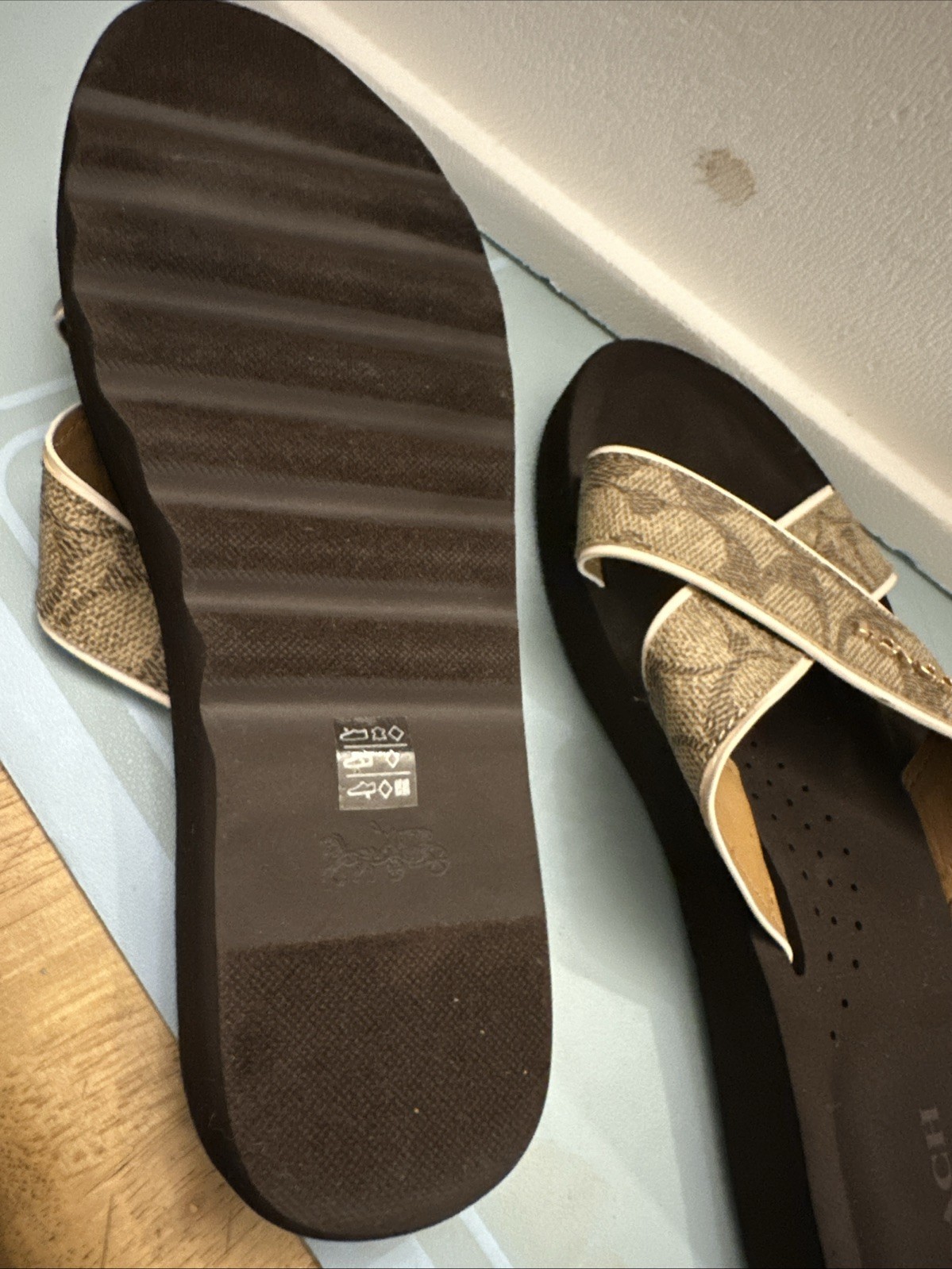 The Coach Slip On Janine Size 8B is a stylish flat shoe designed for women. It features a slip-on closure for easy wear, making it convenient for everyday use. With the Coach brand known for quality and sophistication, these shoes are sure to make a statement with their sleek design and comfortable fit. Perfect for a casual or chic look, these flats are a versatile addition to any woman's shoe collection.tried on an takin back off