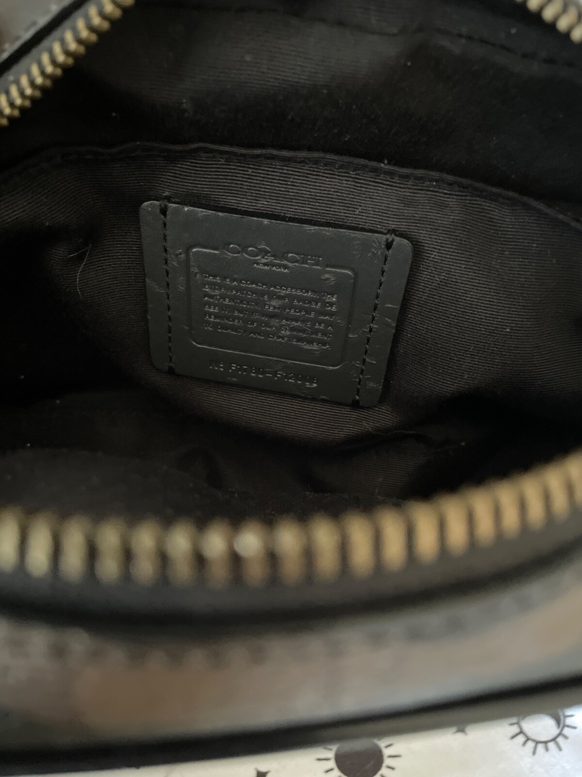 Elevate your travel essentials with the Coach Small Travel Kit in an edgy camo print. Crafted from a durable coated canvas paired with leather accents, this toiletry bag is designed for the modern man on the go. It features a pebbled finish, gunmetal hardware, and a sleek black lining that complements the exterior's green hues.The kit is equipped with a convenient zip closure, ensuring your items stay secure and organized in the 5-inch high, 8.75-inch wide, and 3.25-inch deep compartment. A single side leather handle allows for easy carrying, making it an ideal accessory for business trips, casual outings, or extensive travel. The camo, grunge, and military themes add a touch of rugged sophistication to your daily routine.