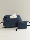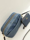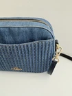 Description Coach Studded Denim Camera Bag Medium-wash denim, Gold hardware Quilting accented with diminutive studs brings a tactile aesthetic to a compact camera bag with logo hardware Interior pockets : 2 Exterior pockets : 1 9”Lx6”Hx3”D Wallet: Denim Zipper closure Credit cards slots Studded Matching with bag, lovely bag Customer Care Atención al Cliente If you have any questions, feel free to reach out-I'm happy to help! 30-day returns accepted if the item was not accurately described in the listing. Thank you for shopping at Karo's Bags and More-your trusted source for authentic style. Si tiene alguna pregunta, no dude en escribirme-¡con gusto le ayudaré! Aceptamos devoluciones dentro de 30 días si el artículo no tue descrito correctamente en el anuncio. Gracias por comprar en Karo's Bags and More.
