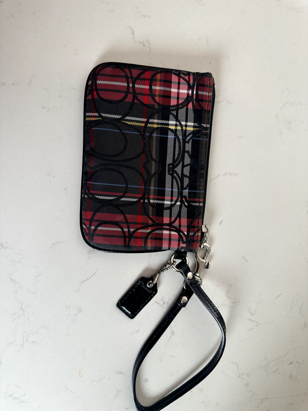 Elevate your accessory game with the Coach Tartan Poppy Plaid Glitter Tote Bag, a statement piece that combines classic style with a playful twist. The bag features a vibrant multicolor plaid pattern set against a durable canvas exterior, complemented by a sleek black leather handle and strap. The glitter accents add a touch of glamour, making it perfect for both day-to-day use and special occasions.Included with the tote is a matching wristlet for added convenience and style. The interior boasts a black lining, ensuring your essentials stay organized and secure. Whether you're heading to the office or enjoying a night out, this Coach Poppy tote and wristlet set is a chic and practical choice for the modern woman.