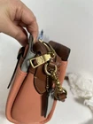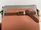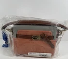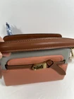 100% authentic guaranteed new with tag and. This is a Coach retail store bag. Stored in smoke-free, pet-free environment. COLOR: BRASS/LIGHT CORAL MULTI Coach Tate 18 Crossbody In Colorblock In Light Coral Multi Glovetanned leather Two credit card slots Inside snap pocket Zip closure, fabric lining Detachable handle with 5" drop Outside open pockets Detachable strap with 21 1/2" drop for shoulder or crossbody wear Four protective feet at base 7" (L) x 5 1/2" (H) x 3 1/4" (W) Style No. C2632