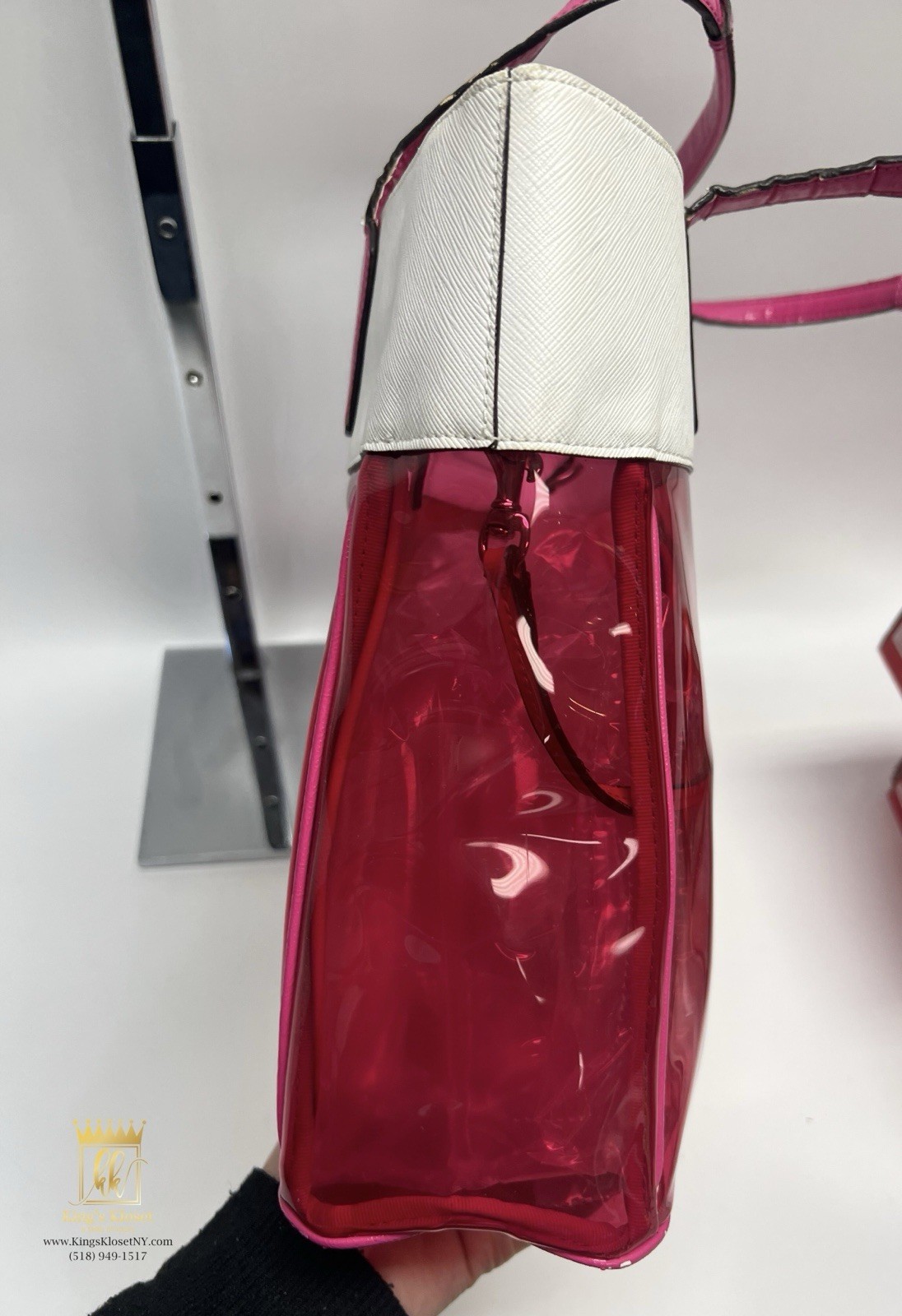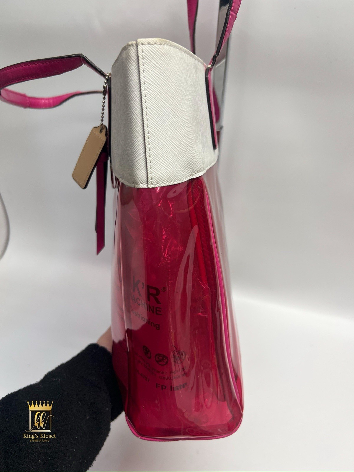 Coach see through tote bag 13x4x12 Includes removable pouch All closures are functional. The item shows signs of wear from normal use- Cracking handles, Marks throughout, Worn straps, Etc. Please refer to photos for further details. In store and our website for $90 JASK8458