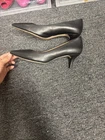The Coach Vintage Leather Pump in black is a stylish and elegant shoe made from high-quality leather. This slip-on pump features a kitten heel and a solid pattern, perfect for a party or cocktail occasion. The brand, Coach, is known for its quality craftsmanship, making this shoe a timeless and versatile addition to any woman's wardrobe. Made with a leather lining, upper, and outsole, this pump is both durable and luxurious, making it a must-have for the fall and spring seasons.