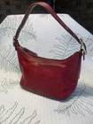 Crafted with precision, the Coach Vintage Legacy West Demi Pouch embodies elegance and functionality. This chic red leather hobo bag, detailed with a classic solid pattern, offers a sophisticated touch to any ensemble. Whether heading to the office or out for a casual day, its versatile design seamlessly transitions to suit a variety of occasions.The bag features a spacious interior lined in a contrasting brown, ensuring your essentials stay organized and easily accessible. Complemented with blue leather straps and gold hardware, it adds a touch of luxury to your travel, workwear, or business attire. The baguette swing style, model Coach Legacy, is a testament to timeless fashion with a modern twist. Very good condition needs a wipe down we don’t doctor up the bags we sell in the condition they are and take as many pictures we can . SEE MY OTHER VINTAGE COACH BAGS IN MY OTHER ITEAMS SECTION MANY MORE LISTED AND MANY MORE TO BE LISTED . Thank you for looking