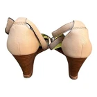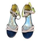 Coach Coretta Sandals Open Toe 3” Wedge Heel Strappy Criss Cross Straps at Ankle and Over Foot Buckle Closure “Coach” On Hardware I Believe These Are Vinatge Beige/Tan/Navy/Chartreuse Vegan Leather Designer Women’s Size 10B Some Wear Especially on The Bottom Still Plenty of Life Left in Them Originally $198 This Is The Chance To Get Designer Shoes At a Bargain Price Overall Good Condition