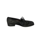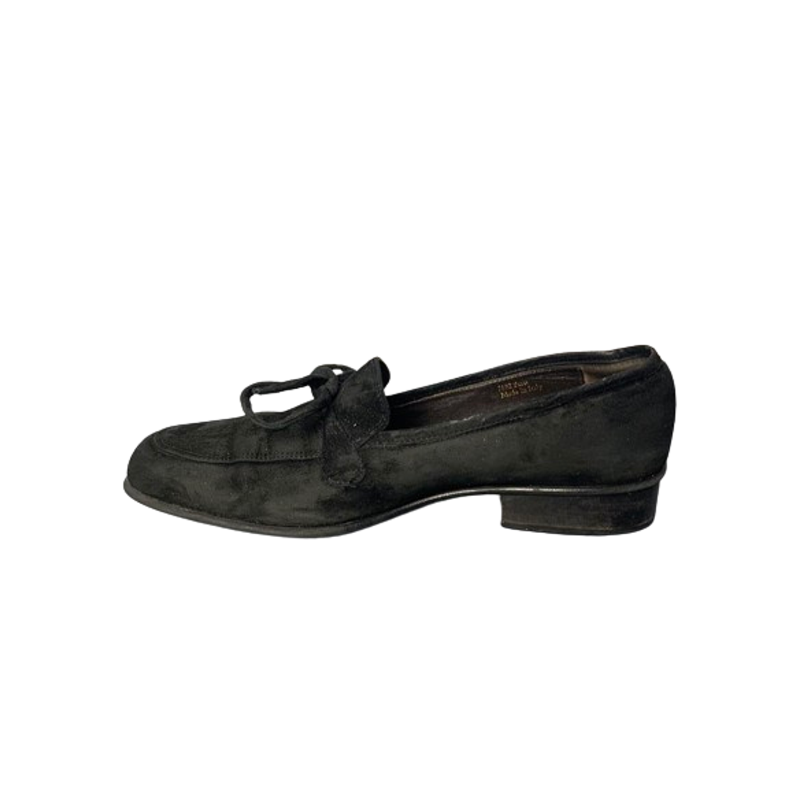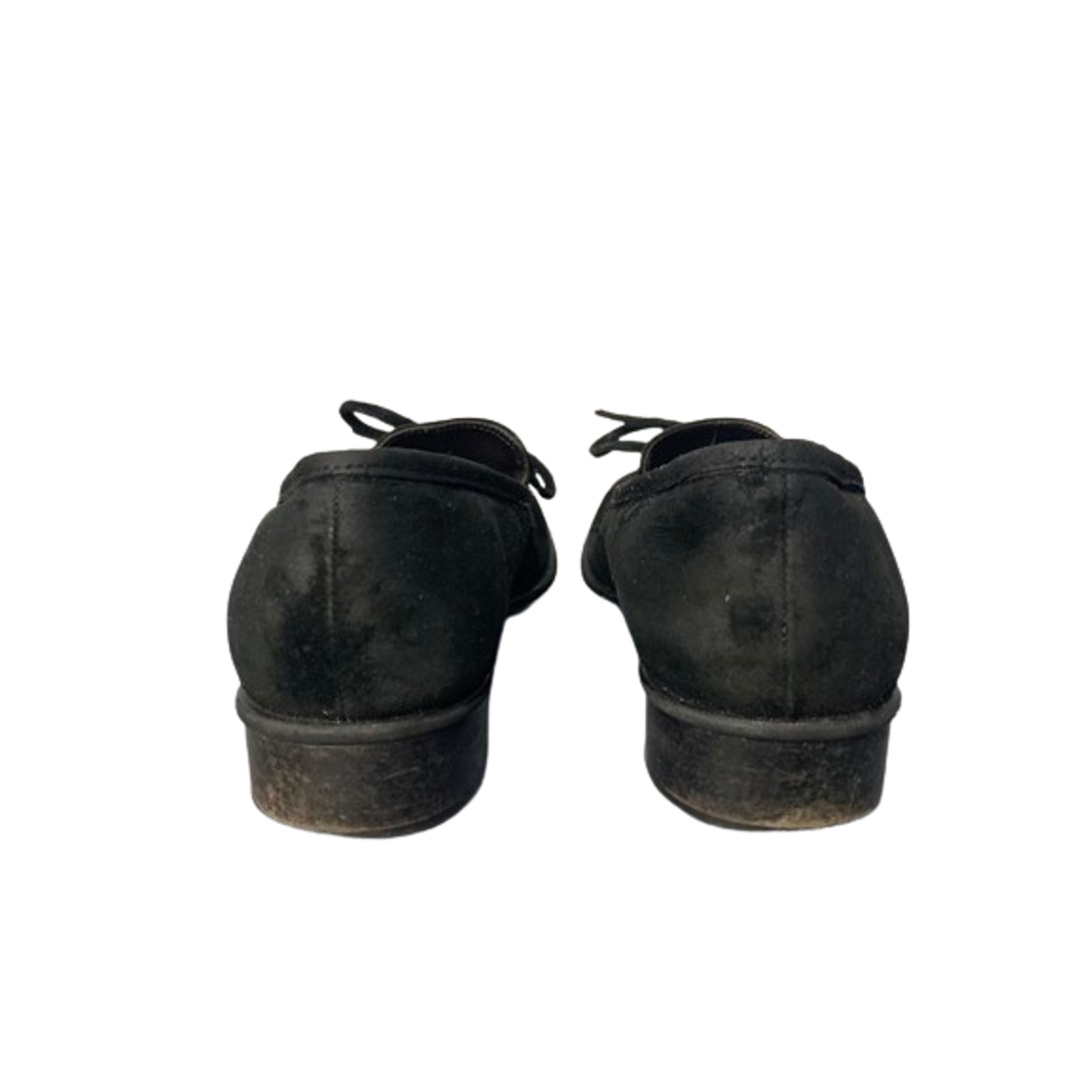 These Coach loafers, crafted from premium suede, offer a sophisticated and versatile addition to any wardrobe. The classic black design ensures they seamlessly complement various outfits, while the bow detail adds a touch of elegance. Ideal for both casual and formal settings, these shoes provide comfort and style. • Slip-on style with bow detail • Durable leather sole • Low 1-inch heel for added comfort • Round toe shape for a relaxed fit Signs of wear on soles and minor scuffs on suede.
