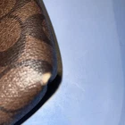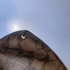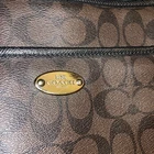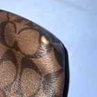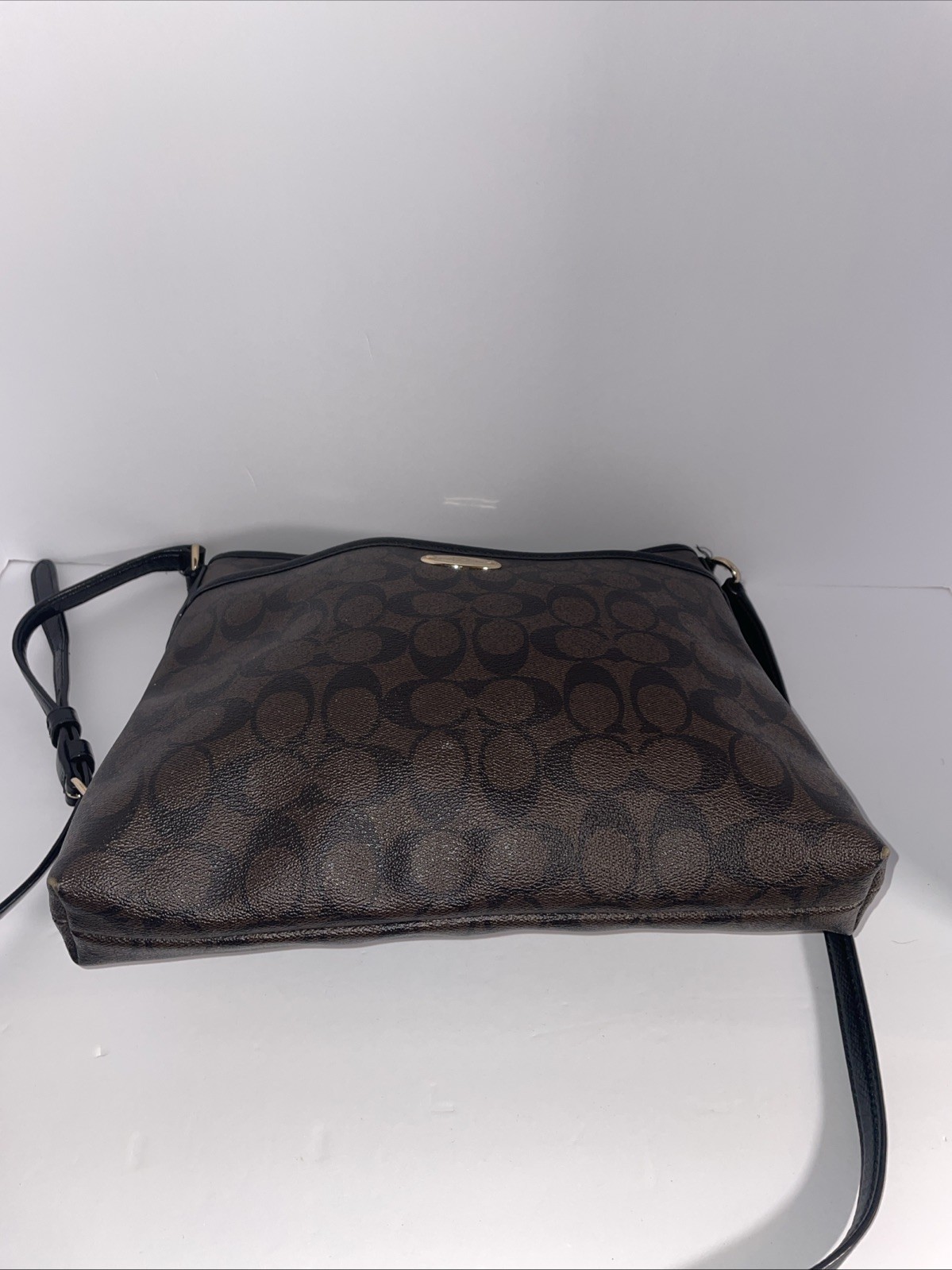The Coach Women's Medium Cross Body Bag in Tan Brown is a stylish accessory for women featuring a solid rectangular shape with a zip closure. Made of leather with gold hardware accents, this designer bag comes with a brown crossbody strap that is adjustable for added convenience. The interior is lined with fabric and includes a bag charm. This versatile purse is perfect for everyday use and adds a touch of luxury to any outfit. The Leather on the bottom of the pointy ends of the purse is scratched off as shown on the pictures but other than that the bag is in good condition.