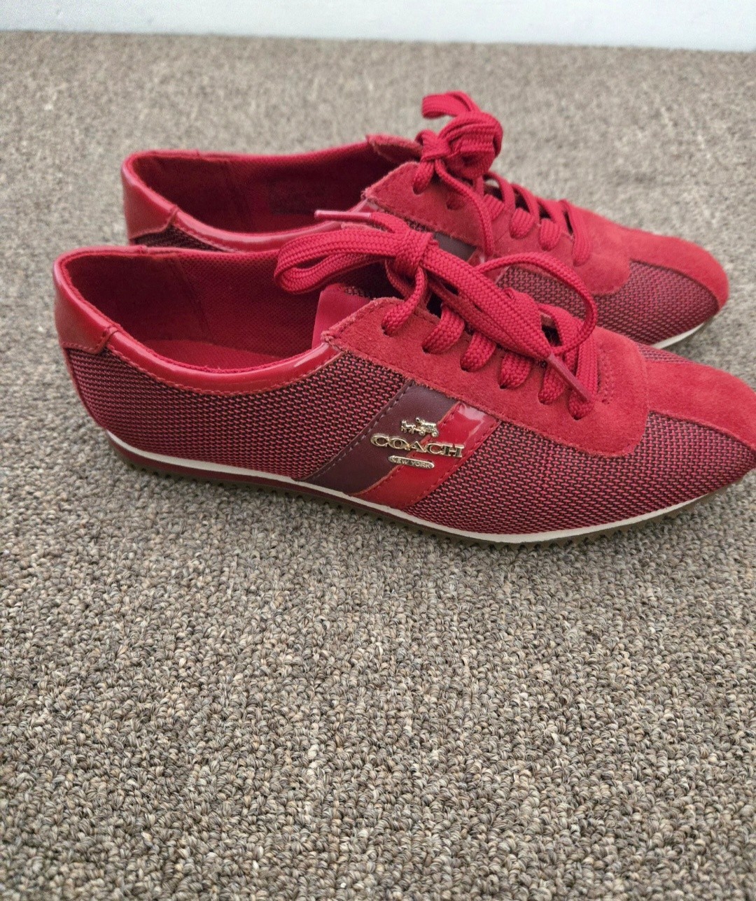The Coach Women's Shoes are a stylish and comfortable option for casual occasions. Featuring a solid red color with the signature Coach logo.