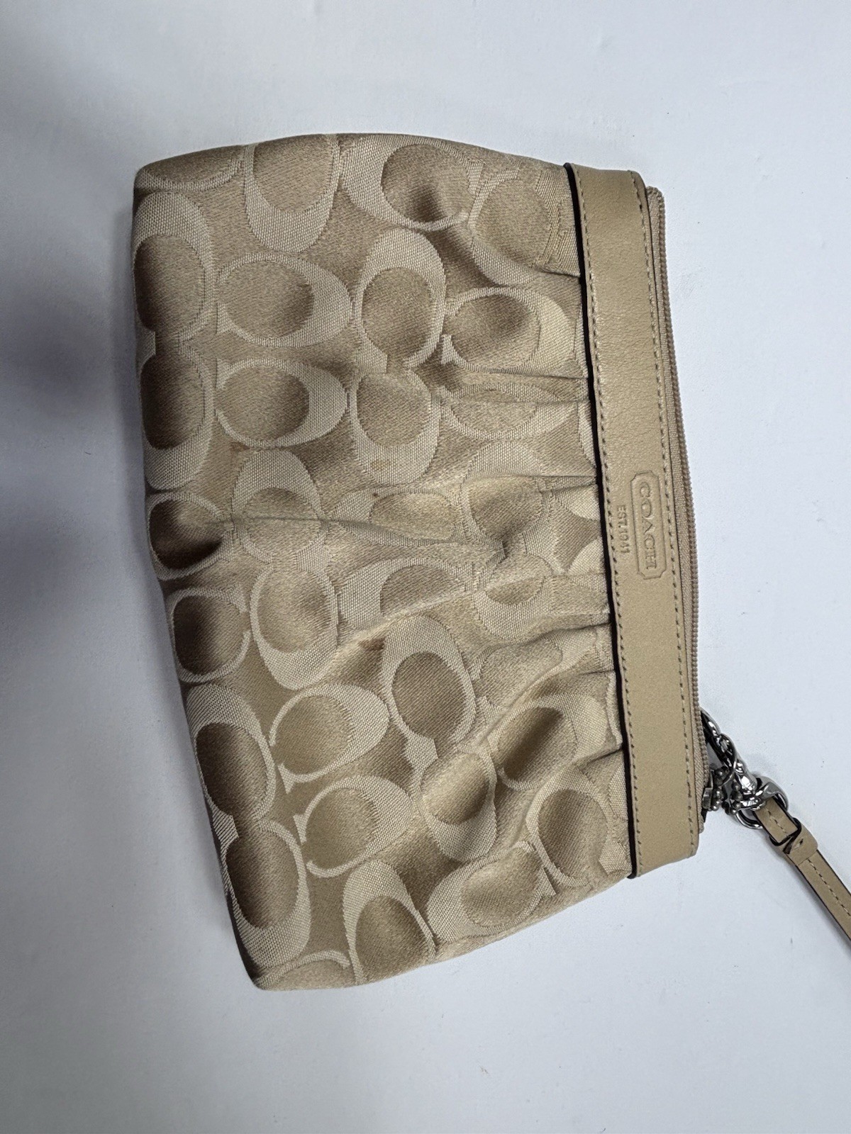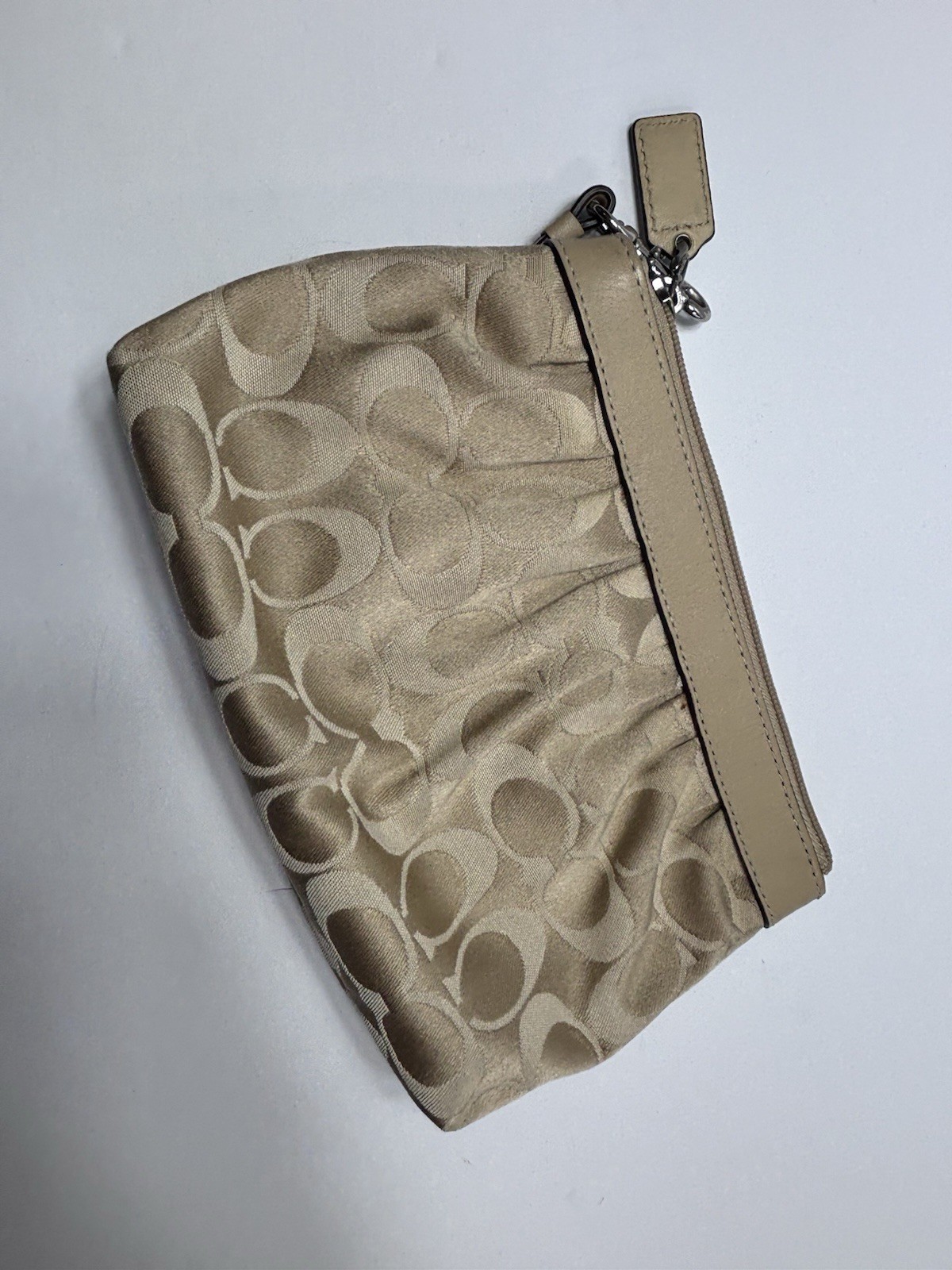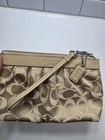 Coach Wristlet Clutch Brown Signature Logo Print Gold Leather Accent Bag Small . Pre owned shipped USPS ground advantage.