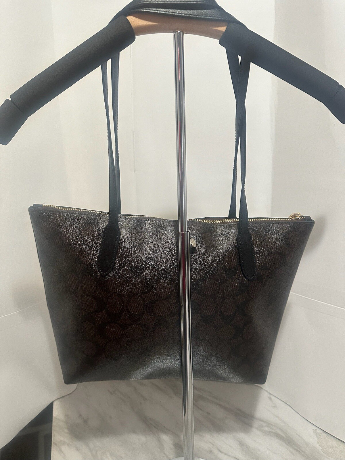 This Coach tote is a dream—luxe brown leather, chic gold accents, and a roomy interior with handy pockets. The zip-top keeps everything secure, and the fabric lining feels so premium. It’s stylish, practical, and in flawless condition—an absolute must-have for any handbag lover!