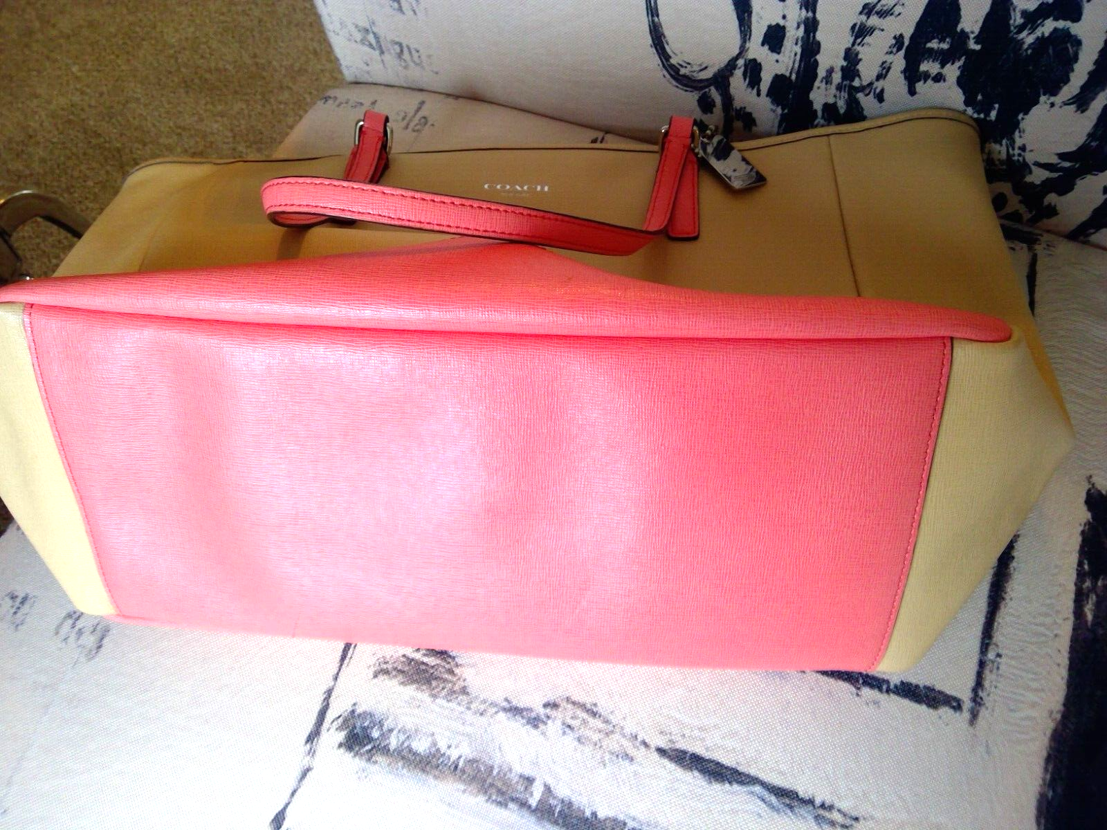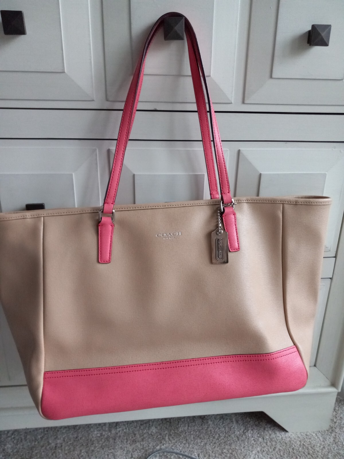 This is a beautiful Coach handbag in excellent condition. It measures 11" high by 12" wide.