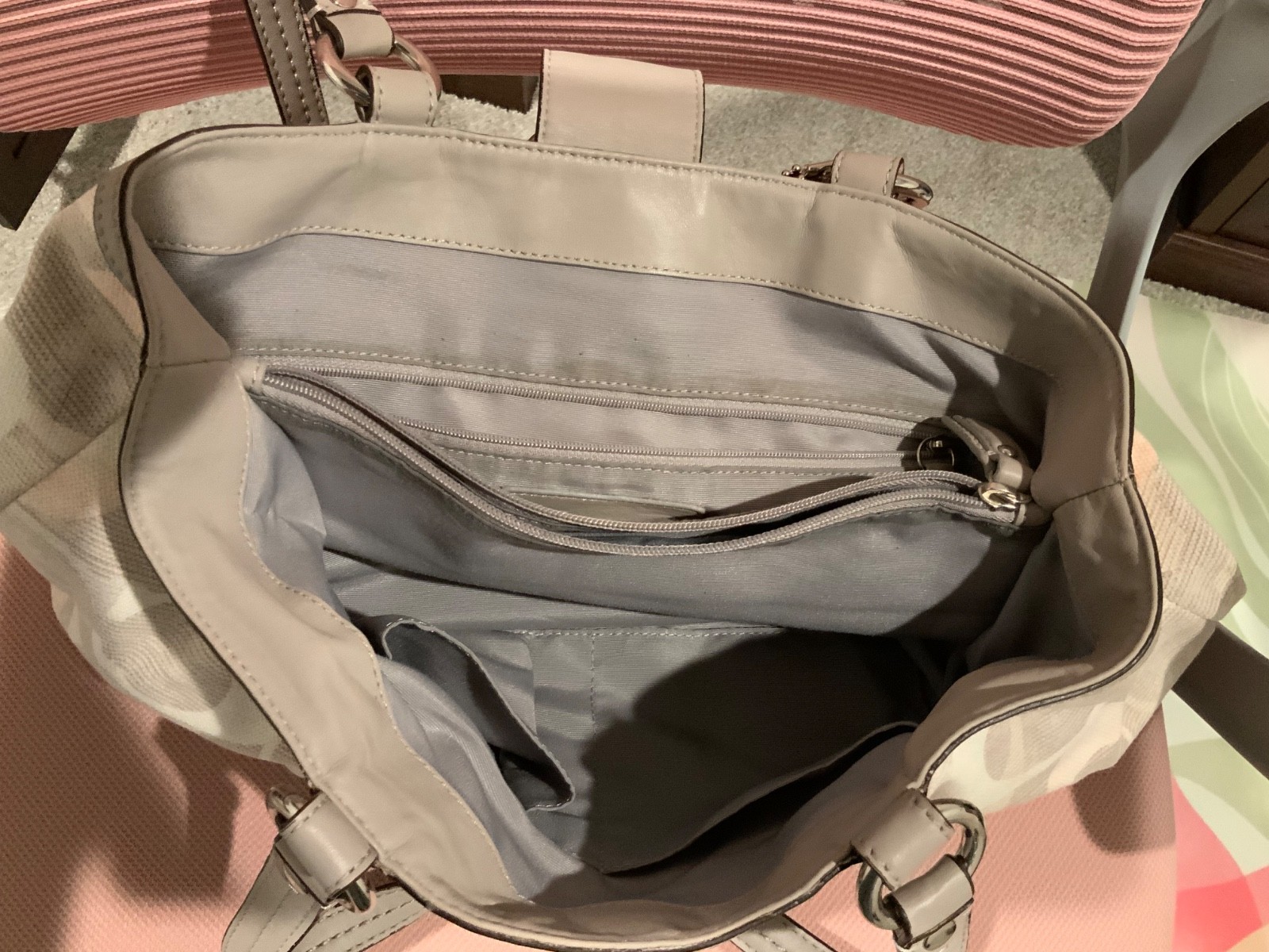 Beautiful summer bag. Has beige, pink, tans and light brown colors. 11x15
