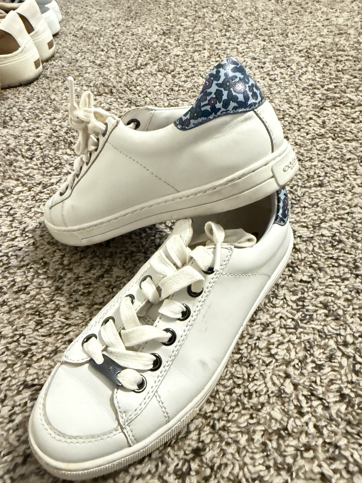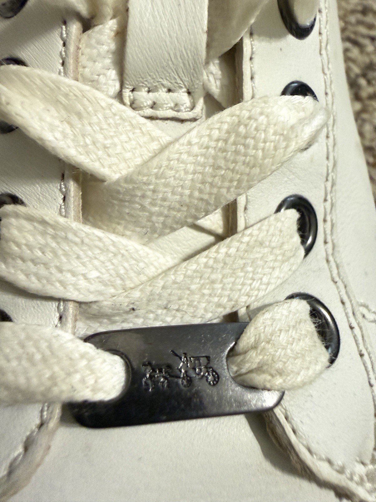 Coach leather Sneakers, white, 5 but is actually good for true size US 6 users. In Good condition