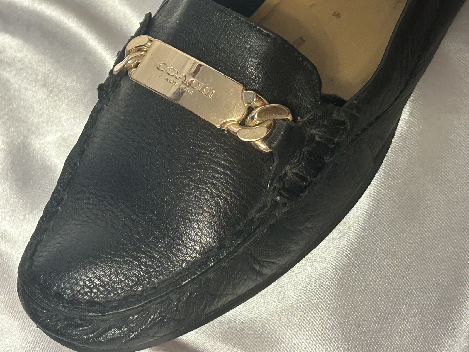 Authentic coach women’s loafers in size 9 B. Gold medal logo detail. Very soft leather uppers and soles look great, the insoles have a few marks from use(not seen when worn)