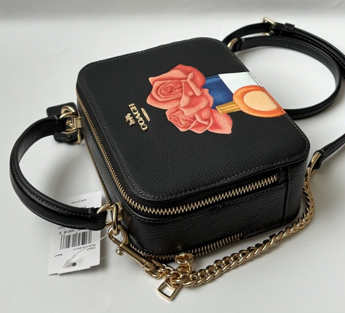 COACH Coach X Tom Wesselmann Box Crossbody Leather Black Multi Style: CQ047 Color: IM/Black Multi Details Refined pebble leather and smooth leather Double zip closure, fabric lining Top handle with 1/2" drop Detachable strap with 22 1/2" drop for shoulder or crossbody wear 7" (L) x 5 1/2" (H) x 2 1/2" (W) 👉Please review all photos, dimensions and descriptions thoroughly before your purchase.👈 Thank you! Please feel free to contact me if you have any question about this product before your purchase! I respond very soon. *Please note that the color in pictures might differ slightly due to lighting, flash and screen resolution. From very clean, Pet and smoke free household!