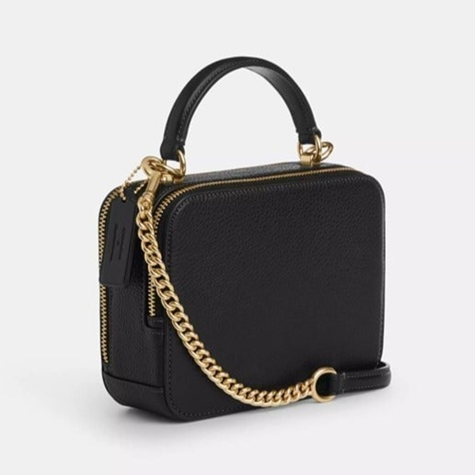 Gold/Black Multi Style Number CQ047 Measurements Length: 7.0" Height: 5.5" Width: 2.5" Materials Refined pebble leather and smooth leather Fabric lining Handle Top handle with .5" drop Strap Detachable strap with 22.5" drop for shoulder or crossbody wear Features Double zip closure Additional Details Coach x Tom Wesselmann © Estate of Tom Wesselmann. Licensed by Artestar, New York