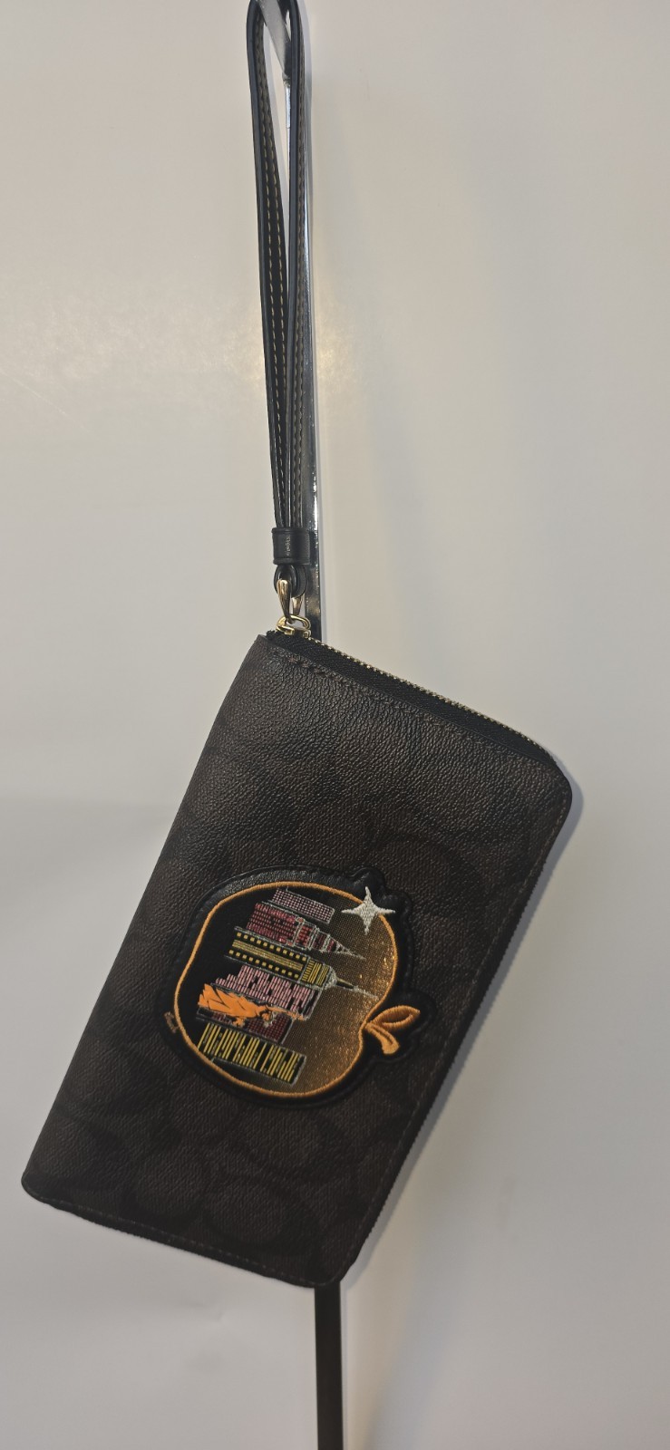 Pre owned in excellent condition. Signature coated canvas and smooth leather Six credit card slots ID window Zip coin pocket Inside phone pocket Zip-around closure Wrist strap attached 7 1/4" (L) x 4" (H) x 3/4" (W)