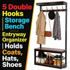 Coffee Mango Wood Coat Stand with Storage Bench | Modern Industrial Entryway Organizer Product Highlights ✅ 2-in-1 Multi-Functional Design : This handcrafted coat rack bench combines 10 sturdy hooks (5 double hooks) for hanging coats, hats, scarves, and towels, plus a spacious bench with hidden storage for shoes, bags, and clutter—ideal for foyers, entryways, or mudrooms.✅ Premium Mango Wood & Iron Build : Crafted from gorgeous, durable mango wood with unique natural spalting patterns and a powder-coated iron frame, this piece resists wear and tear while boasting one-of-a-kind color variations.✅ Modern Industrial Aesthetic : Sleek metal frames contrast beautifully with smooth natural wood, adding a chic, understated vibe to any home decor style.✅ Artisan Handcrafted Quality : Each piece is expertly made by artisans—natural variations in wood grain and color are not flaws, but proof of its unique, one-of-a-kind craftsmanship.✅ Perfect Size for Entryways : 29.50” W x 13.75” D x 75.50” H dimensions with a 19.25” bench height fit seamlessly in compact spaces without sacrificing storage capacity.✅ Easy Care : Simply wipe clean with a dry cloth as needed to keep it looking brand new. Technical Specifications Color : Coffee Main Material : Solid Mango Wood Frame & Leg Material : Powder-Coated Iron Assembled Dimensions : 29.50” L × 13.75” W × 75.50” H | Bench Height: 19.25” Net Weight : 61.73 lbs Package Dimensions : 33.50” L × 26.00” W × 19.50” H Gross Weight : 77.89 lbs Care Instructions : Wipe clean with a dry cloth when needed After-Sale Guarantee ✅ 1-Year Warranty : We stand behind our craftsmanship—enjoy a 1-year warranty against manufacturing defects for worry-free shopping.✅ 30-Day Free Return & Exchange : Not satisfied with your purchase? Return or exchange your coat stand bench within 30 days of delivery, no questions asked. Ideal For Entryways, foyers, mudrooms, and even bedrooms—keep your space organized and stylish with this practical, eye-catching coat rack bench!