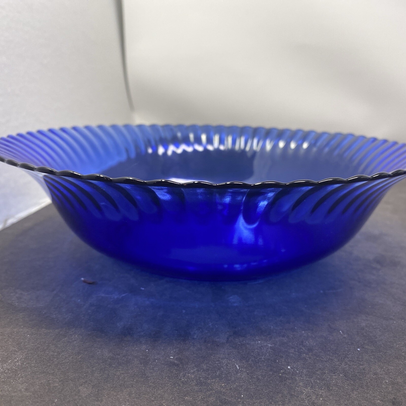 The Colored Cobalt Blue Fluted Bowl from Brazil by Colorex is a beautiful and vibrant serving bowl made of glass. Its unique design, with a fluted edge, adds a touch of elegance to any dining table. The rich cobalt blue color adds a pop of color to your serveware collection, making it a stylish and eye-catching piece for serving salads, side dishes, or snacks. Made in Brazil, this bowl brings a touch of Brazilian craftsmanship and charm to your home decor. The bowl is 9” wide 3” tall. Located on shelf M1