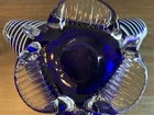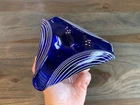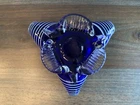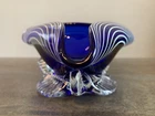 Glass Art Trinket Dish Ashtray Cobalt Blue White Lines Vintage Wavy Lines. Beautiful glass Art in cobalt with white way to lines. It can be used as an ashtray or trinket dish/catch all or just as it’s stunning self for display. In good condition, shows normal wear consistent with age and use. Please refer to the pictures as they’re part of the description. Measurements: - Length: 14.6 cm - height: 8.4 cm - width: 8.3 cm - weight: 546 g