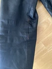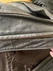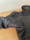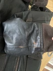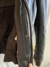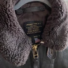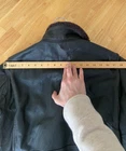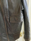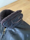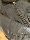See approximate measurements flat in pics. Buyer pays shipping. Feel free to ask any questions. Pics are a part of the description. Thanks for shopping! Great preowned condition! Wear: ALL FLAWS ARE IN PICS AFTER MEASUREMENTS; scratches to leather, a missing pocket button and flaw on collar 100% goatskin leather Silky polyester lining Mouton shearling collar Bi-swing back Under arm grommets Front zipper over USN wind flap Two front flap pockets Interior snap close pocket Knit cuffs and waistband