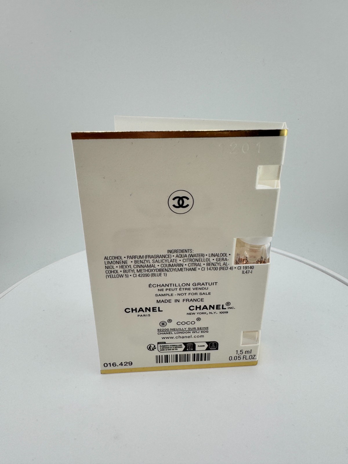 💫 Coco Mademoiselle – CHANEL Paris Eau de Parfum Sample (1.5ml) Scent Profile: Fresh, Oriental, Sophisticated Coco Mademoiselle is a modern classic—bold, elegant, and undeniably feminine. It’s the essence of a confident woman who embraces her independence and leaves a lasting impression with every step. Gender: Feminine Perfect for day or night, special occasions, or everyday luxury. Key Notes: Top: Orange, Bergamot Heart: Turkish Rose, Jasmine Base: Patchouli, Vetiver, Vanilla, White Musk Impression: This fragrance opens with a bright burst of citrus, softening into a romantic heart of rose and jasmine. The base is warm and sensual, with patchouli and musk adding depth and allure. Often described as “chic in a bottle,” Coco Mademoiselle is timeless, captivating, and effortlessly elegant.