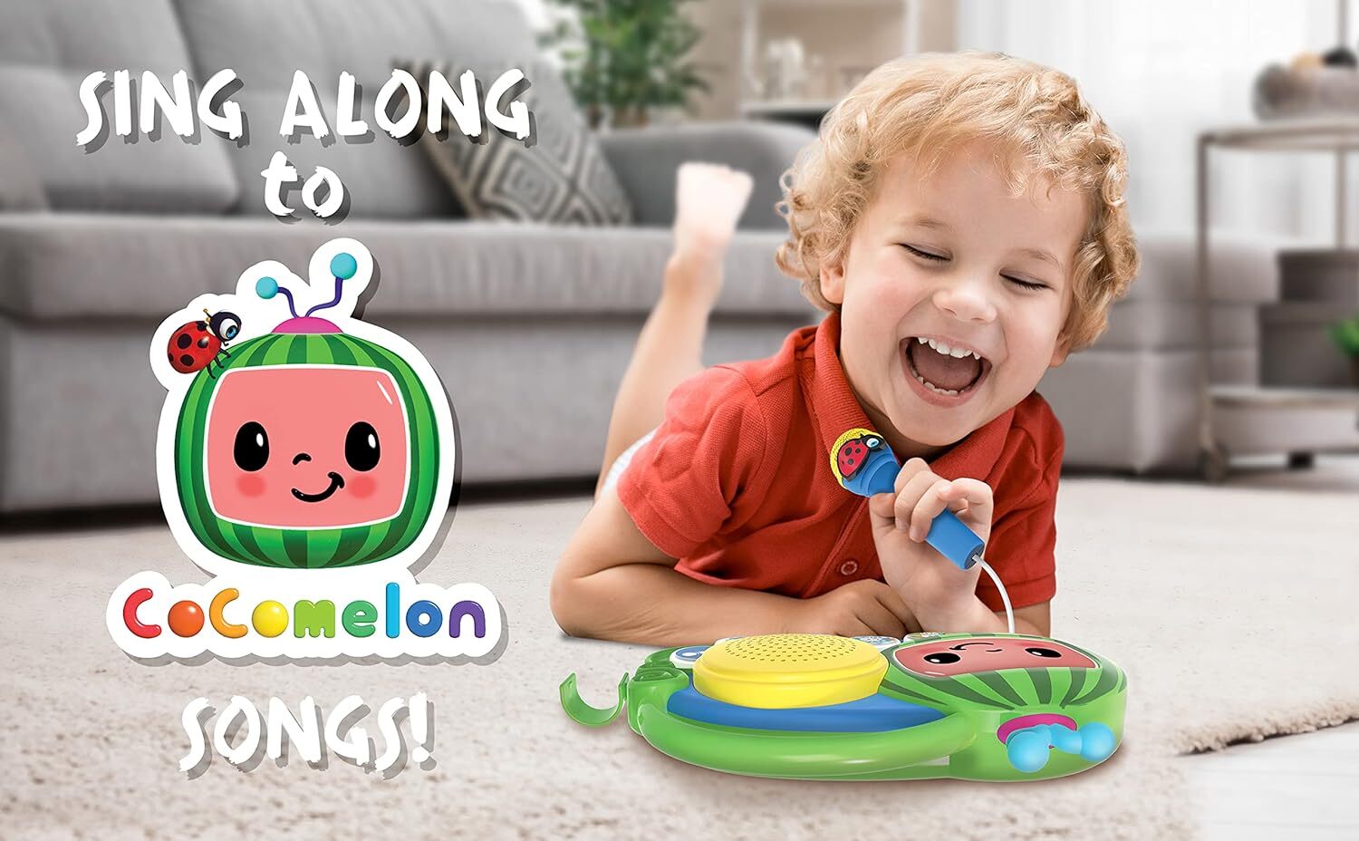 eKids Auxiliary Cocomelon Toy Singalong Boombox with Microphone for Toddlers, Built-in Music and Flashing Lights, Fans of Cocomelon Gifts