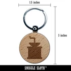 Coffee Grinder Solid Engraved Wood Round Keychain Tag Charm