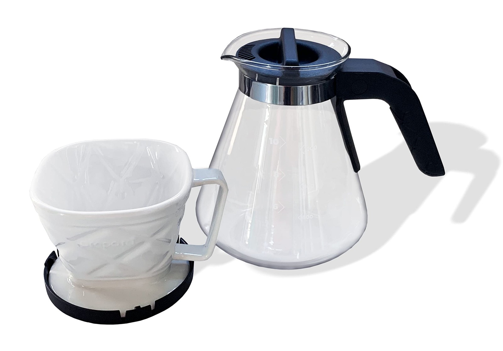Make delicious coffee with ease and less waste High quality, heat-resistant glass with quilted style pour over ceramic cup Brew to desired taste Simply add a filter and desired amount of coffee. Pour hot water over and enjoy Carafe has heat-resistant handle and marked in cups and milliliters. Dishwasher safe