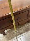 good condition Add a touch of French country charm to your living room or home office/study with this beautiful coffee table from Ethan Allen. Crafted from high-quality cherry, the table features a rectangular shape with a tabletop material that adds an elegant touch to your space. The Maison Lasalle Coffee Table has two drawers, and the item length is 48 inches, while the item width is 32 inches, and the item height is 17 1/2 inches. The rustic color of the table complements any decor, making it a perfect addition to your indoor space.