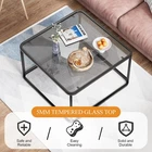 Coffee Table Glass, Minimalist Square Tables for Living Room, Modern Center Table for Office or Small Space, Tempered Glass, Sturdy Metal Frame, Easy Assembly, 26.4 x 26.4 x 15.7 Inches, Gold 【Elegance& Fashionable】The glass coffee table has a stylish and elegant design.You can place it in the living room, bedroom, office, apartment, etc,26.7 x 26.7 x 17.7 Inches, this glass coffee table is suitable for large and small spaces. It will not only decorate your space but also meet your storage needs. 【Rounded Corner Safety Design】The corners of the square table are designed with rounded corners, which not only look beautiful but also prevent you from getting injured by bumping into the edges and corners, thus better protecting your safety. 【Premium Quality Materials】Modern coffee tables are made of high-quality metal frames, which are sturdy and durable. They are also equipped with tempered glass as the tabletop, making them more beautiful and durable. 【Easy Assembly & Clean】The center table is equipped with detailed installation instructions and tools, and each part is numbered, allowing you to have a clear understanding at a glance and install the product more quickly. And since the surface of the central table is made of glass, you only need to wipe it with a damp cloth to clean it thoroughly. 【Considerate Service】If you encounter any problems during purchase, installation or other aspects, you can contact us at any time through Amazon. We will reply to you within 24 hours and provide you with solutions. So if you encounter any problems, please don't hesitate to contact us.