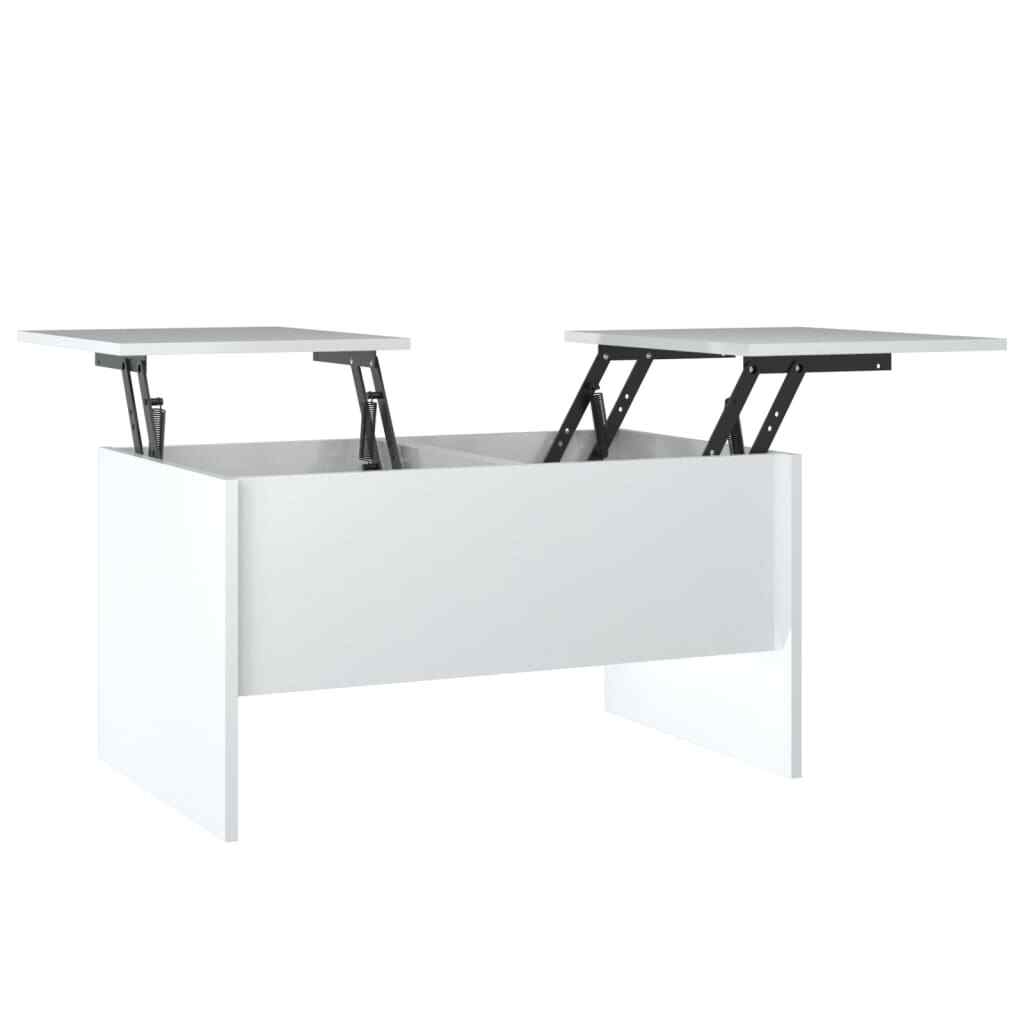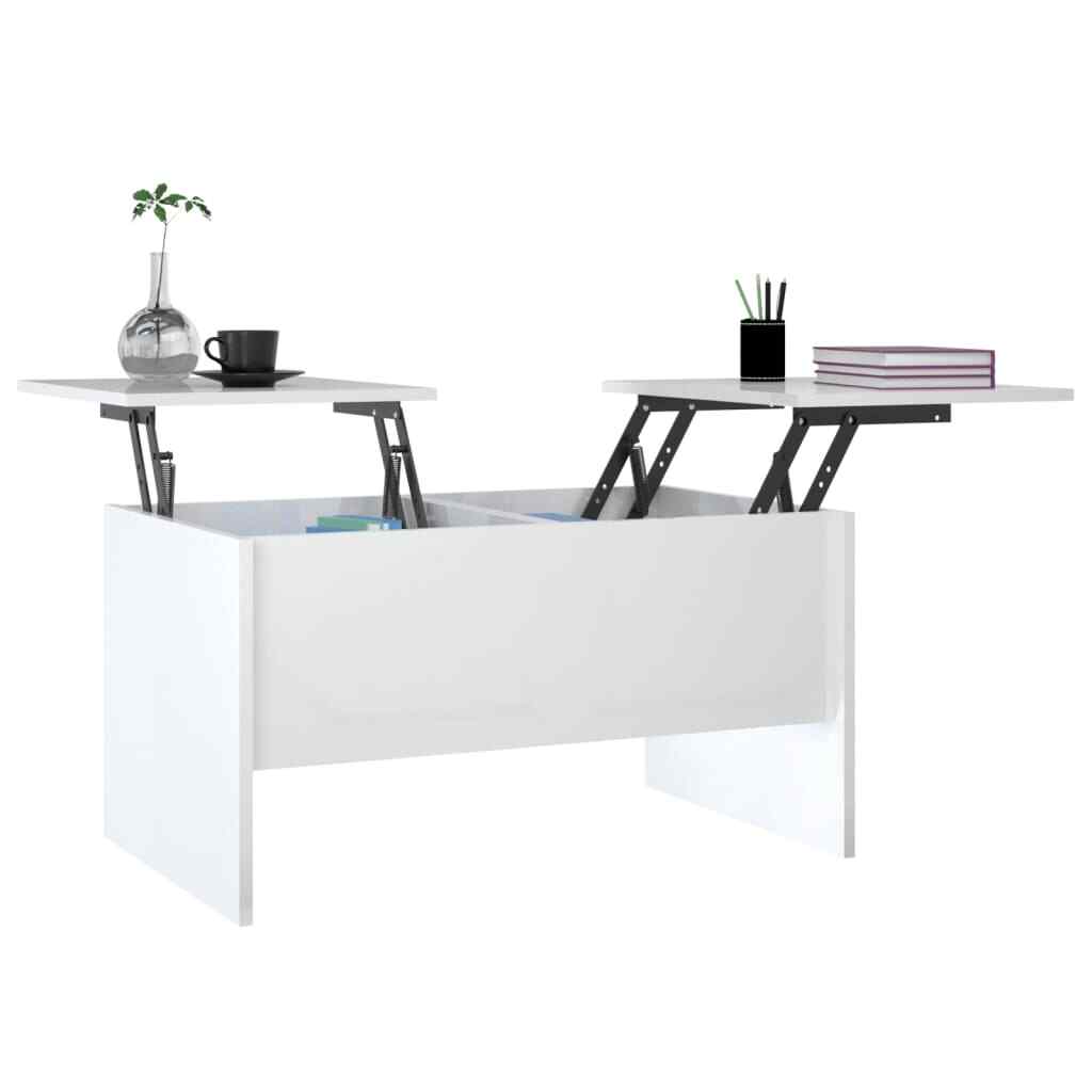 Looking for something more refined, compelling and functional in your room? This coffee table is a perfect choice for you. Premium material: The engineered wood is of exceptional quality with smooth surface and also features strength, stability and resistance to moisture. Ample storage space: This modern coffee table boasts two hidden storage compartments, offering plenty of storage space to allow your books, magazines within reach, and protect them from dust. Unique liftable design: The adjustable tabletop mechanism provides the perfect height for writing, reading or drinking. Color: High gloss white Material: Engineered wood Dimensions: 31.5" x 19.7" x 16.7" (L x W x H) Assembly required: Yes California Proposition 65 Warning: This product can expose you to chemicals including wood dust, which is known to the State of California to cause cancer. For more information go to . Shipping Restrictions Due to the limited access of our couriers, this item cannot be delivered to the following locations: Alaska Federated States of Micronesia Guam Hawaii Marshall Islands Military Posts (APO / FPO) Palau Puerto Rico US PO BOX Virgin Islands Our customer support will contact buyers for orders with no shipment service, and these orders will be cancelled and fully refunded afterwards.