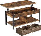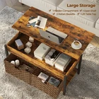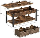 [Lift Top Design] The lift-top mechanism is an added feature based on the basic coffee table, allowing the tabletop to lift and move forward to create a decent workspace or dining space while snuggling on your sofa. [Large Storage Space] Two rattan baskets expand your available storage space and keep all your things handy and organized. The hidden compartment beneath the tabletop will help you allocate and organize your workspace. The lower open shelf is better for storing snacks, magazines. [Enduring Support] The high-quality mechanism ensures easy, smooth, and silent lifting and lowering. Supported by sturdy metal legs and adjustable feet, this piece is built to last throughout everyday use. [Stable and Reliable] The raw materials meet the EPA TSCA Title VI and Carb Certification. All we offer is for a safe and healthy living environment. [Easy Setup] Instruction and tools included, each pieces are labeled, just follow the diagram instructions assemble it step by step, recommend two people to assemble it. Product Description Rolanstar Coffee Table Lift Top Coffee Table with 2 Baskets Find a chic, practical, and lift-top coffee table for your living room. The tabletop can be easily adjusted to a suitable and comfortable height to use a laptop. A spring with a more elastic structure is applied to ensure safe and smooth operation when lifting up and lowering down the tabletop. We also provide 2 partitioned lower shelves and offer 2 free woven baskets to help you store and organize your home. Sturdy Metal Lift-up Mechanism The spring with more uniform elastic structure ensures safe and smooth operating when lifting up and lowering down. Sturdy Metal Legs Solid metal table legs ensures the stability and durability for long lasting use. Storage Bin 2 free baskets are provided for convenient storage. Suitable for organizing your books, magazines, CDs, and etc. Adjustable foot The adjustable feet are designed to ensure the stability of the table and prevent it from wobbling. Other Product in Our Store Size 18.9"D x 66.1"W x 63.8"H 18.9"D x 55.1"W x 35.1"H 62.2"D x 47.2"W x 63"H 12.5"D x 18.9"W x 70.9"H 19.6"D x 14"W x 66.9"H Material Particle Board & Metal Particle Board & Metal Particle Board & Metal Particle Board & Metal Particle Board Room Type All Room All Room All Room All Room All Room with LED ✔ ✔ ✔ ✘ ✔ with Power Outlet ✔ ✔ ✔ ✘ ✘