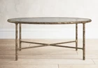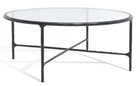 please DO NOT BUY without checking ETA first! Gorgeous high end couture designer sells via Horchow, Neimanns, Saks, high end retailers. Fabulous RH forged thaddeus look for less , without sacrificing quality! NOT RH! Black not available until spring, but I do have in a 30" x 40" oval. Please ask. Choose from: Forged brass with a tempered glass table top, Forged silver iron with glass top or Forged black iron with glass top Dimensions (W * D * H):36" X 36" X 15"