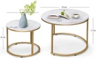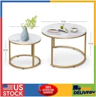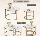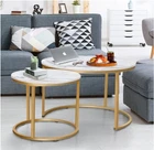 aboxoo Coffee Table Nesting White Set of 2 Side Set Golden Frame Circular and Marble Pattern Wooden Tables, Living Room Bedroom Apartment Modern Industrial Simple Nightstand Product Dimensions 23.6"D x 23.6"W x 17.7"H Color Gold White Brand aboxoo Table design Coffee Table Style Minimalist About this item ● 【 COMBINE AS YOU LIKE 】 Nesting white round coffee table include a large table (Φ 23.6 × 17.7 inch) and a small table (Φ 15.7 × 15.7 inch). A small table can be placed under the bigger one to save spaces . You can combine them as you like. ● 【 STRONG AND DURABLE 】 Made of denser and uniform particle board, the white marble patterned desktop has a modern and elegant appearance. The thickness is 0.59", and The surface of the coffee table is scratch-resistant and waterproof, which is very strong and durable. ● 【 ELEGANCE & FASHIONABLE 】 Designed in modern style, the nesting coffee table set is elegant and minimalist, bringing charm to your living room and giving your visitors a good impression of your home. ● 【 UNIQUE & INGENIOUS 】 The round tabletop and semi-circular steel leg design style is unique and ingenious. Stabler and more durable than other materials, the semi-circular steel leg not only has smoother and more beautiful lines but also is more secure than other square legs, which can avoid injury. ● 【 EASY TO ASSEMBLE 】 You can easily set it up in just a few minutes. Installation instructions and accessories are all in the package. . We offer FREE shipping on all orders! . We ship within Five business days of payment, usually sooner. . We use a selection of shipping services such as UPS, FedEx, USPS etc. . We only ship to the lower 48 states, no APO/FPO addresses or PO Boxes allowed. . Local pickups and combined shipping options are not provided at this time. . Your satisfaction is a wonderful reward for our efforts. Please assist us by leaving a positive review if you feel pleased with our service. . In the event that you encounter any difficulties related to your order, please do not hesitate to reach out to us directly through the Messaging system on the Ebay platform. Kindly consider opening a COMPLAINT or a RETURN REQUEST as a last resort, only after all other possible measures have been attempted and we have been unable to provide you with assistance. . We will get in touch with you within 24 hours and make every effort to ensure your satisfaction. . Please rest assured of our service quality.